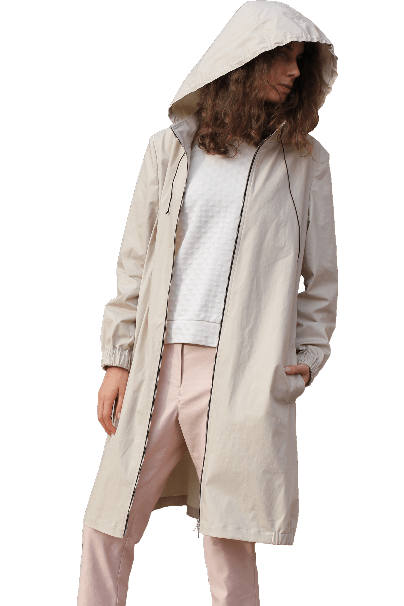 Sand coat made with organic cotton. The light material makes this coat perfect for chilly or rainy summer days. Zand gekleurde jas van biologisch katoen. Het lichte materiaal maakt deze jas perfect voor koude of regenachtige zomerdagen.