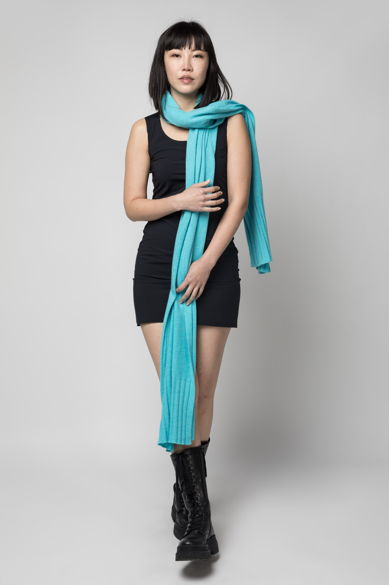 This incredibly soft and finely knitted cashmere-mix scarf with its ribbed details on both ends is perfect for her or him. A length of 225cm allows you to wear it anyway you like. There are only a few pieces of this limited edition available, so pick your favourite from our six colour styles.